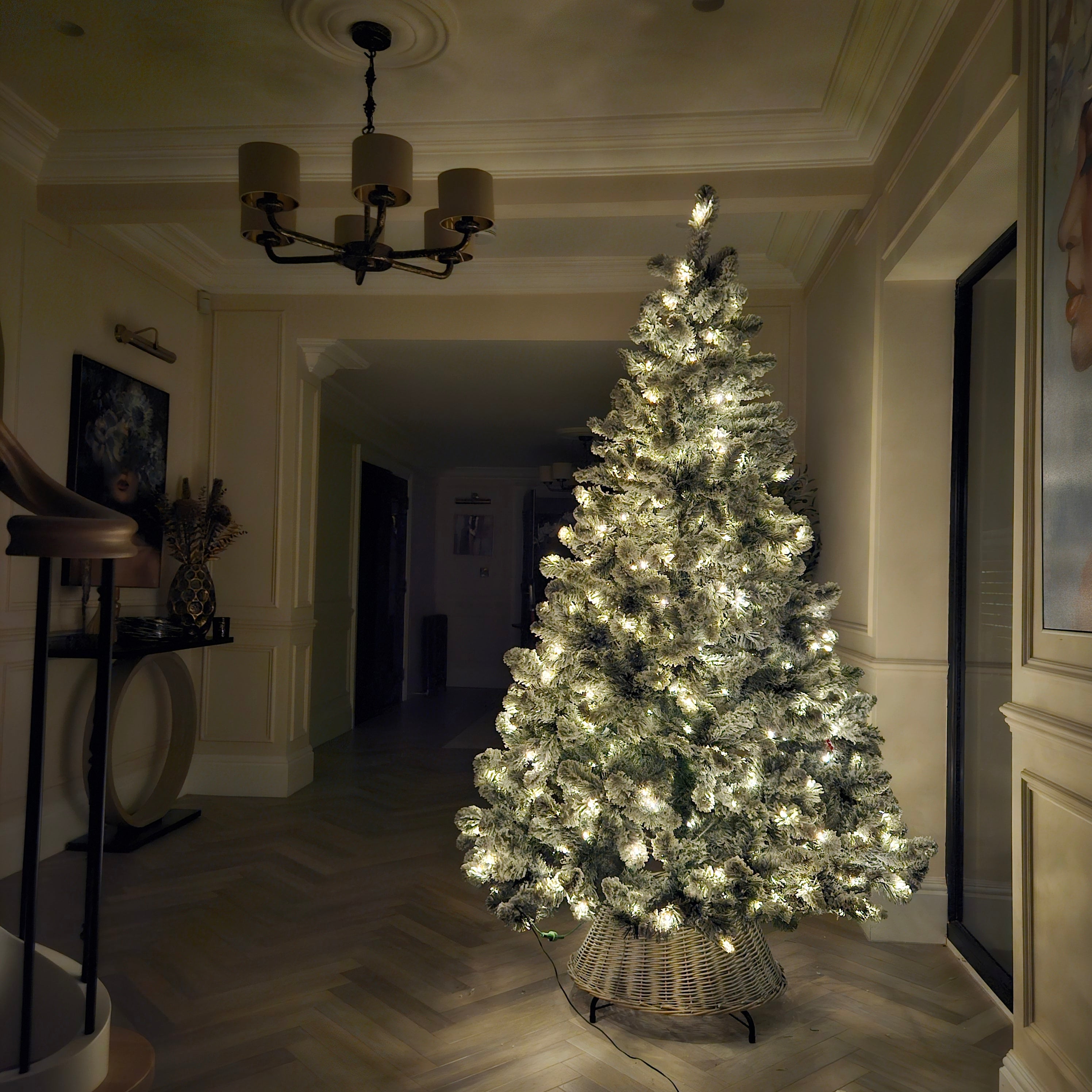 Transform your home into a winter wonderland with the 7ft Pre-Lit Flocked Christmas Tree by Yule Get Lit. Expertly designed to take the stress out of Christmas, this tree combines effortless elegance with hassle-free convenience.