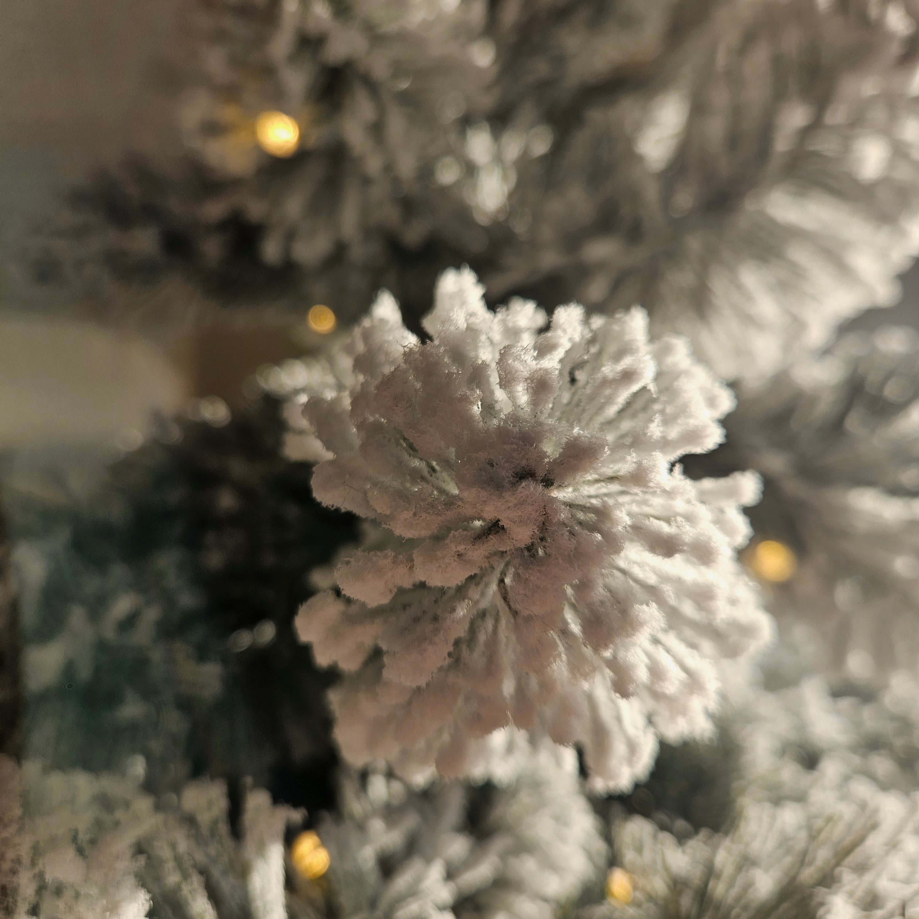 - Snow-Covered Charm: Flocked to perfection, this tree mimics the beauty of freshly fallen snow, bringing a cozy, frosted vibe straight to your living room.